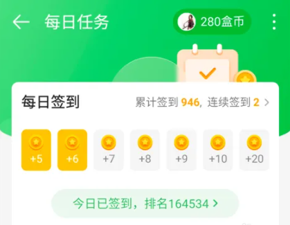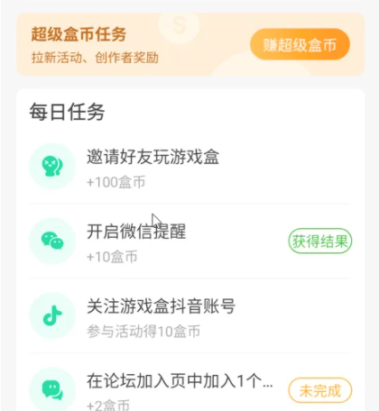 1) 赚取零用钱:通过完成任务与每日签到积累盒币;
