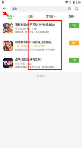 1、首先在【找游戏】页面的搜索框输入【皮肤】关键词。