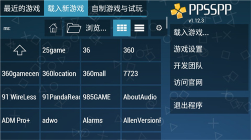 2. 在安卓手机上安装并启动PPSSPP模拟器;进入程序后找到存放游戏的目录,默认位置为Sdcard,即可看到已存放的游戏镜像;开始游戏前建议先进行模拟器设置,本教程设置主要针对低配置设备,高配置手机可酌情调整。
