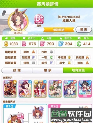 常规可选择三张速度卡、两张力量或耐力卡、一张友人卡,若无友人卡可替换为智力卡,也可直接采用三速二力一耐或三速二耐一力的组合,主要提升速度,次要补充耐力或力量,并兼顾智力;