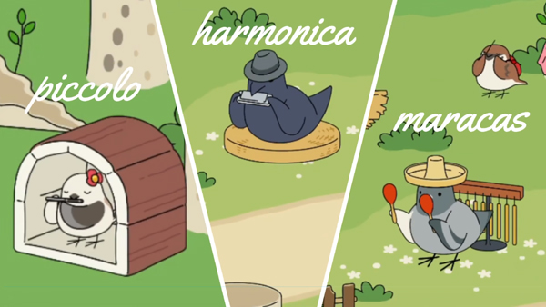 每只鸟都有独立的背景故事、乐器偏好与生活习性。通过探索地图和赠送礼物可以提升亲密度。随着鸟儿成长,它们会解锁更多旋律段落,为你的演奏曲库增添新的篇章。