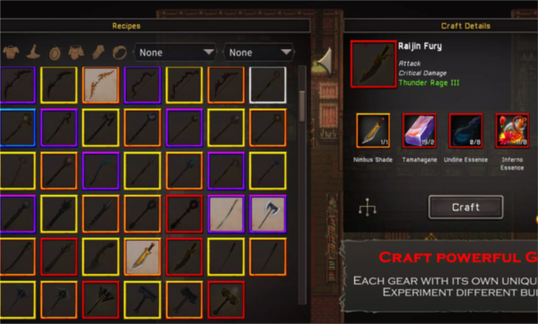 装备锻造:制造武器、防具与特殊饰品,提升角色战力,每件装备都拥有独有效果;所有可制作装备均可在铁匠铺查阅。