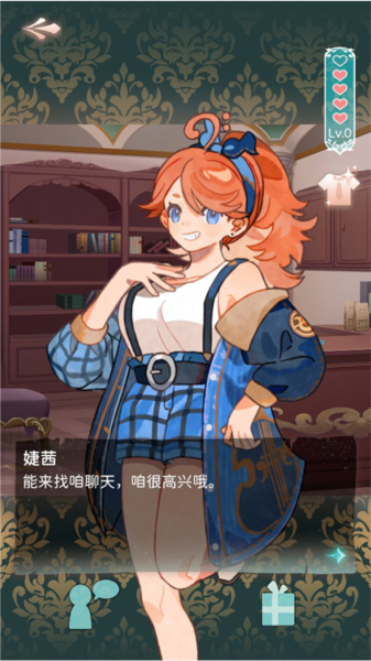1、游戏初始会展开剧情对话,完成后进入主界面,可与角色聊天互动。