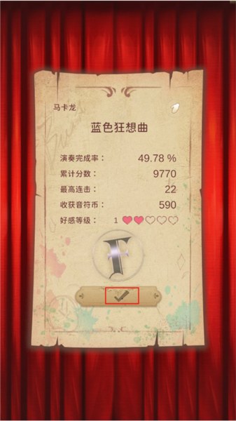 6、演奏结束后系统将展示评分,得分越高则评价越佳。