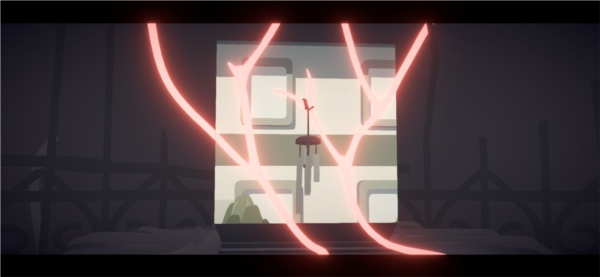 玫瑰花被汽车碾过后,场景切换至废弃房屋;