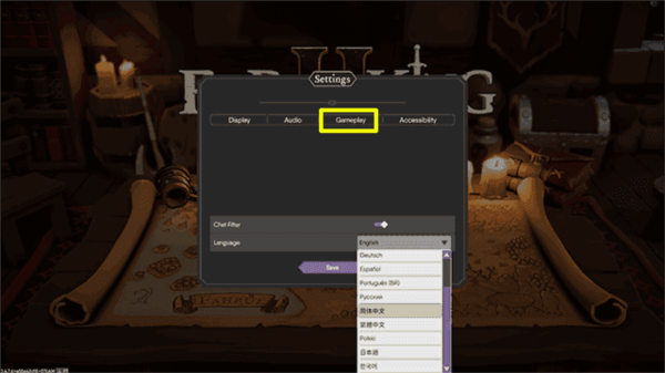 2、在设置界面这里的Language中选择适合你的语言后点击save键保存;