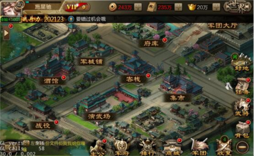 在主城内,玩家可以前往酒馆招募武将、在客栈宴请名士、于集市购买道具、参与演武场竞技或挑战各类战役活动。在世界地图中,则可推进主线关卡、参与城池争夺战或拜访在野武将。