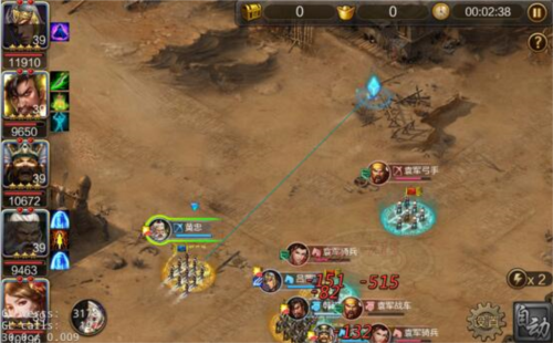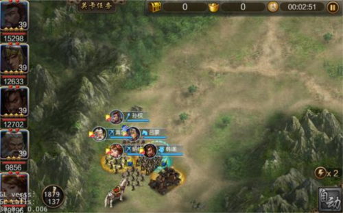 战场左侧排列着出战武将的头像,武将在战斗中自动积累战意,战意满后头像亮起,点击即可释放强力的专属技能。