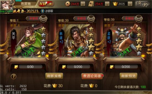 客栈内每日会刷新三名特定武将,宴请他们有机会获得大量将魂,用于武将升星与培养。