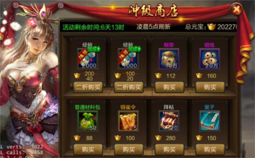 4、冲级商店:开服前七日每日开放,商店内可用超值价格购买经验包,是加速升级的补充途径。