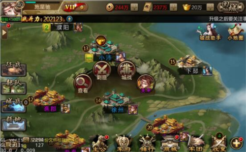 角色达到15级后解锁军团功能,加入军团即可参与世界地图上的城池争夺,向统一天下的目标迈进。