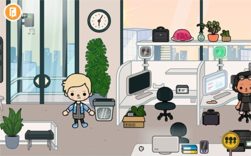 2、点击任意建筑即可进入;例如选择商业楼,里面是一间办公室,能看到许多办公用品和工作人员。