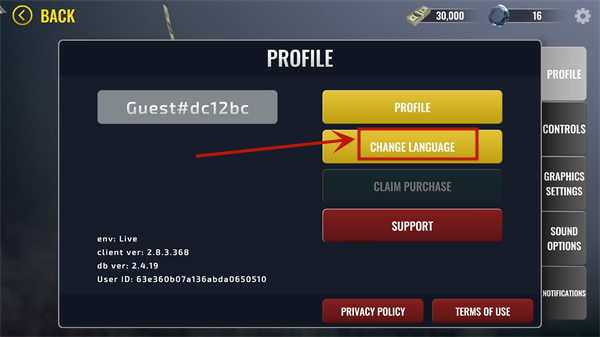 2、在设置界面选择“CHANGE LANGUAGE”进入语言设置。