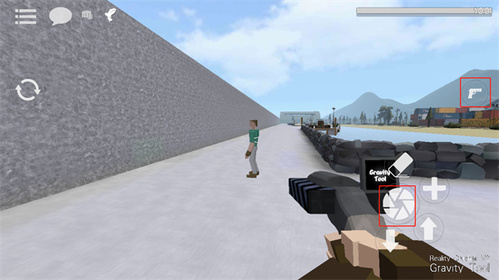8、右侧有手枪按钮,点按像快门的键可射击,长按并拖动也能操作,加号能添加新靶子;