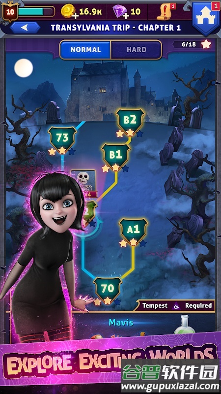 游戏情节与动画电影《特兰西瓦尼亚酒店》主线高度契合;德古拉、马维斯及其伙伴被一场诡异风暴带至陌生岛屿,从此展开充满困难与挑战的全新生活。他们将遇见名为Impa的可爱小生物,这些生物会协助德古拉尽快寻回失散的朋友。你的使命是通过完成关卡挑战来赢得Impa的帮助,它们将成为旅途中的忠实伙伴,在困境中给予指引与支援。借助Impa赋予的奇特技能与超能力,玩家能够击退各类危险敌人;在它们的协助下,你将顺利突破多个关卡,深入探索神秘失落岛屿,与可怕怪物交战以夺取隐秘宝藏,并不断解锁新的前行路径。