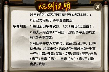 在官府府邸争夺中,称号等级高的玩家享有优先权,可占领更优据点获取更多行动力。