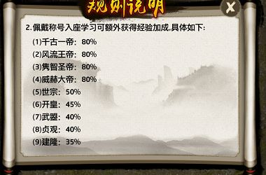 佩戴称号后,聊天信息将显示特殊称号与边框;在翰林院学习可获得额外经验加成。