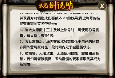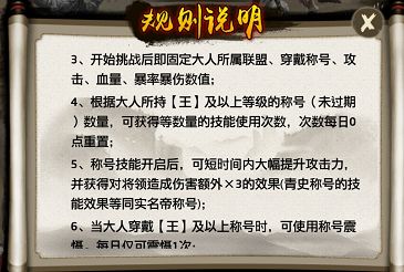 在“全军出击”副本中,高等称号可释放特殊技能提升攻击,并能使用“震慑”效果,压制称号低于自己的对手。