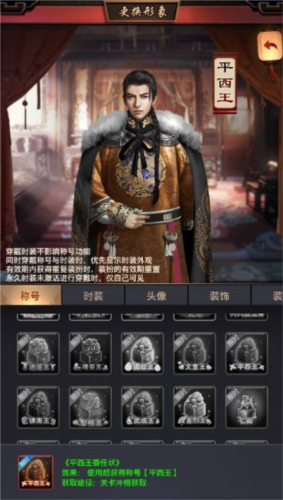 称号从低到高分为公、卿、王、帝等多个品级,不同称号附带不同属性加成与外观特效。