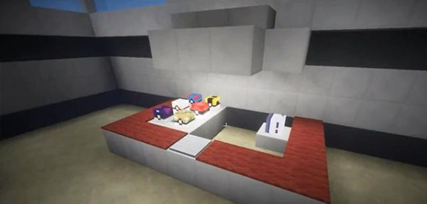 然后在前台内部制作一个用于放置精灵球的池子,还需设置一台电脑,可使用头颅方块进行模拟。