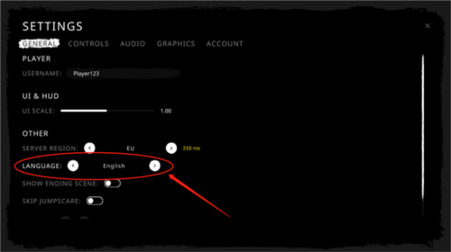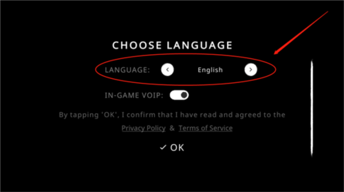 1、首次进入游戏会看到如下界面,点击【English】右侧的按钮进行语言调整。