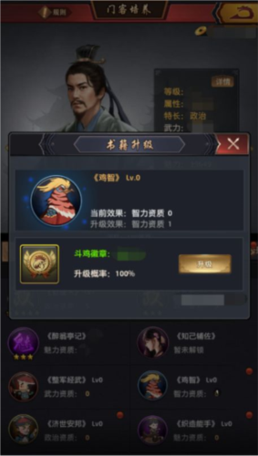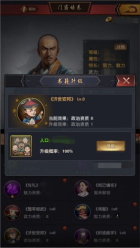 3、培养系统:通过多种途径提升门客与自身的属性能力;