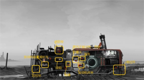 4、驾驶操作简单,主要是油门与刹车。注意蒸汽压力,过热时释放可同时实现加速,这在后期关键时刻有用。前后拉环各有用途:前拉环在平地可牵引车辆或钩住物品拉回;后拉环用于倒车调整位置。安装船帆步骤简单。地图中散落着许多装饰物,收集它们可以个性化装扮你的移动之家。