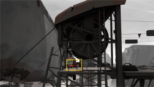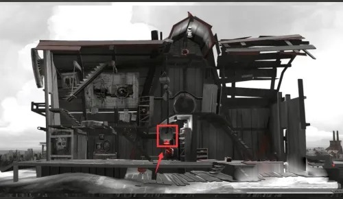 6、解谜难度不高,下车走到桥对面,将油桶放置在箭头指示处,按下开关即可。