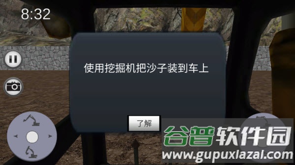 5、将车辆行驶至任务目标区域,停放在指定位置后,便可启动挖掘机进行作业。