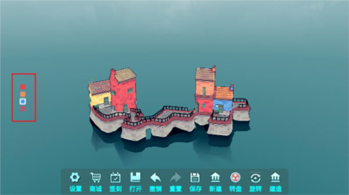 1、小镇色彩丰富,在屏幕上滑动点击就能生成风格各异的房屋。