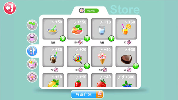 7、花朵商店提供服装、零食及生活道具供解锁购买。