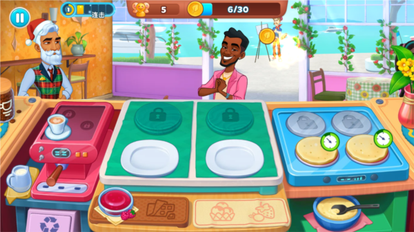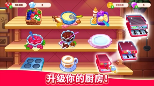 使用金币升级厨房设备,提高效率与顾客满意度。