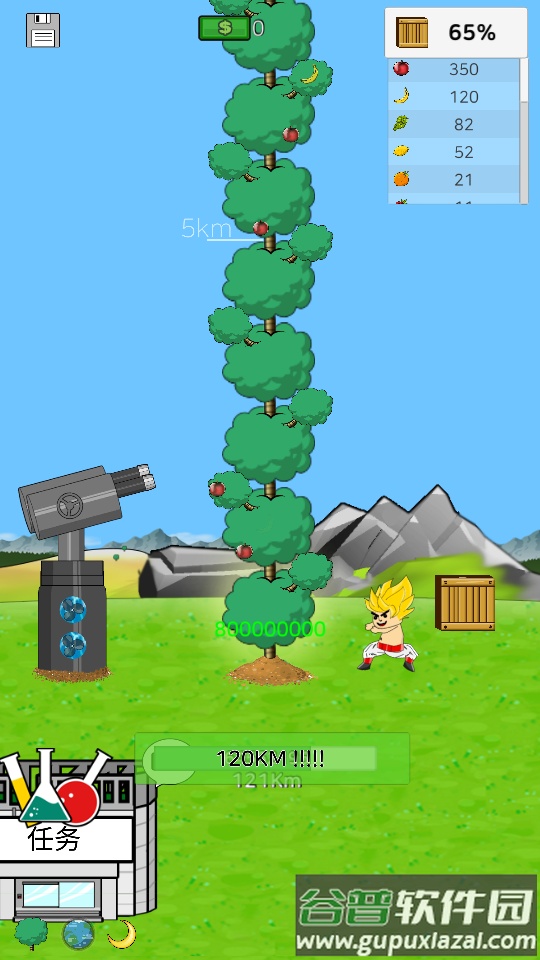 1、这是一款采用2D塔状画面的休闲种树游戏。