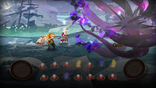 消除动作会触发相应角色发动攻击,不同消块数量对应不同技能。每次消除后,版面会从右侧补充新色块,同时敌方行动冷却减少一回合;冷却归零时,敌方执行行动并重置其冷却时间。