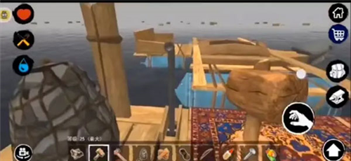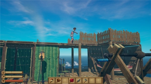 接下来可以适当扩建木筏,为后续更多功能设施预留空间。在实现完全自给自足之前(即除了偶尔修补被鲨鱼咬坏的木板外,无需频繁离船冒险),切勿产生资源已足够的错觉。游戏前中期,资源匮乏是常态,应尽可能多地储备材料。
