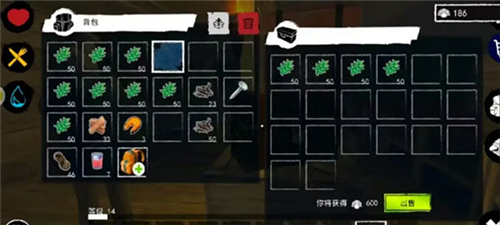 第二步是制作皮艇,皮艇的材料也由常见资源构成,勤于收集便能合成。完成皮艇,登岛计划就完成了一大半。