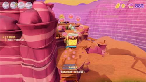 也就是在二周目关卡中出现的次要目标。游戏主线时长约十小时,全收集需要更长时间。建议玩家在完整通关主线后再回头收集次要目标,主要原因是每进入一个新箱庭世界,海绵宝宝就会获得新能力;许多机关谜题需要后期解锁的能力才能解开。在获得所有能力后再进行收集,能避免重复探索带来的乏味感。