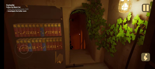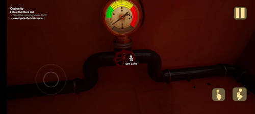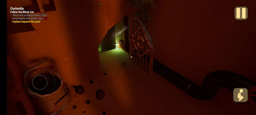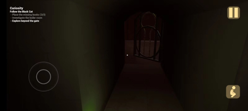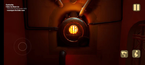 1、进入游戏后选择右边按钮开启黑猫章节;你会出现在房间外,许多门上锁,需找到未锁房间进入。