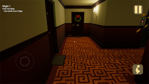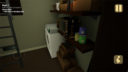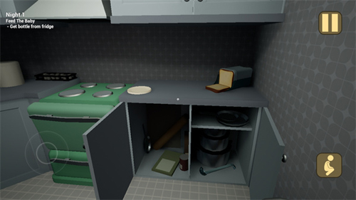 接着是换尿布的关键时刻,请做好心理准备;当你拿起尿布正要更换时,婴儿会突变成恶魔将你吓倒,并召唤玩具攻击;你必须迅速前往自己房间取出金色奶嘴为它戴上,随后它会倒下;接着带它去婴儿房阅读绘本,即可达成第一个故事结局;之后进入第二个故事情节,该部分更为恐怖,婴儿会突然发飙。