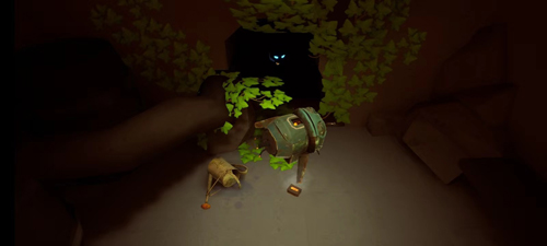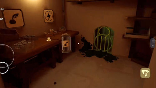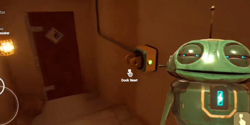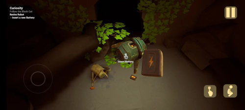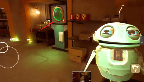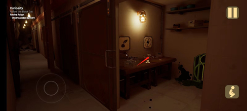 10、向右走,打开里面的门发现小猫,随后一个机器人出现,你需要找到电池。