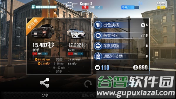 5、底部两车相并的图标是表演赛;系统会提供两辆完全相同赛车供体验,无论胜负每日可参与三次,是稳定获取收益的途径;在车辆与配置完全一致条件下,胜负取决于玩家的操作熟练度。