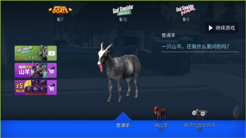 模拟山羊年度版中可逐步解锁多种山羊角色;