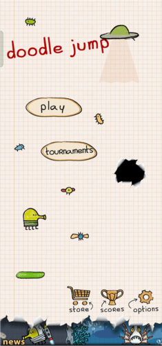 1、玩家需引导涂鸦小怪物不断向上跳跃,小心破碎的平台、移动的蓝色平台、黑洞、UFO和敌人;途中可借助火箭、竹蜻蜓、弹簧和弹簧鞋等道具实现快速上升;