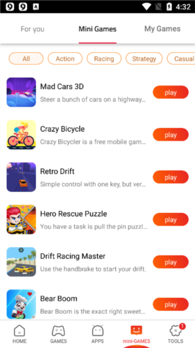 拥有极其丰富的应用集合,几乎涵盖所有类型;从游戏到壁纸工具,各类用于个性化设备的应用都能在这里找到;资源还进行了细致的分类,例如游戏板块下会进一步划分不同类别,便于用户筛选。