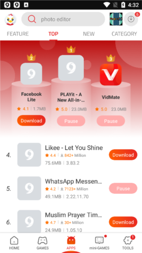 9Apps是一款面向游戏爱好者的实用下载工具,它汇集了海量游戏资源供用户免费获取。在这里,你可以轻松找到并安装感兴趣的游戏,整个过程无需任何费用。该软件还能一键跳过安装权限验证,并提供来自谷歌市场的各类付费资源,让用户能够便捷地体验海外应用,大大拓展了移动设备的使用乐趣。
