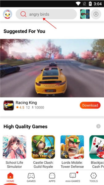 1、打开软件后,点击搜索框,输入你想下载的游戏名称。