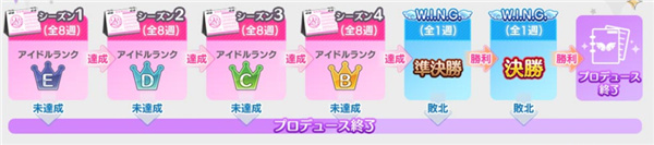 成功通过四轮预选后进入WING比赛;此阶段无法进行任何准备,唯有依靠前期培育成果与现场发挥。若在决赛前偶像等级达A及以上并获胜,可解锁真实结局。