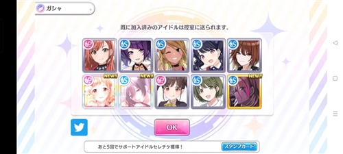 【扭蛋】是获取偶像卡牌的主要方式;卡牌分为“育成偶像”与“辅助偶像”。育成偶像经培养后可成为庆典偶像;辅助偶像则在育成过程中提供支持。