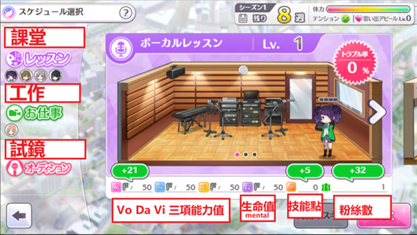 作为制作人,可自主选择课程、工作、试镜等行动;