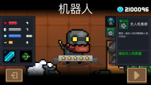 | 机器人 | 生命值4 护甲7 能量200 暴击加成0 技能1:对附近的敌人持续的电击。满级后电击的攻击数量增加。 技能2:无人机集群:释放一组无人机对周围敌人进行攻击。 被动(属性强化):激光武器和闪电武器激光加粗,伤害增加 武器:卫星浮游炮 初始房间出现时会给予玩家一个白色、蓝色品质的种子 | ![]() |
